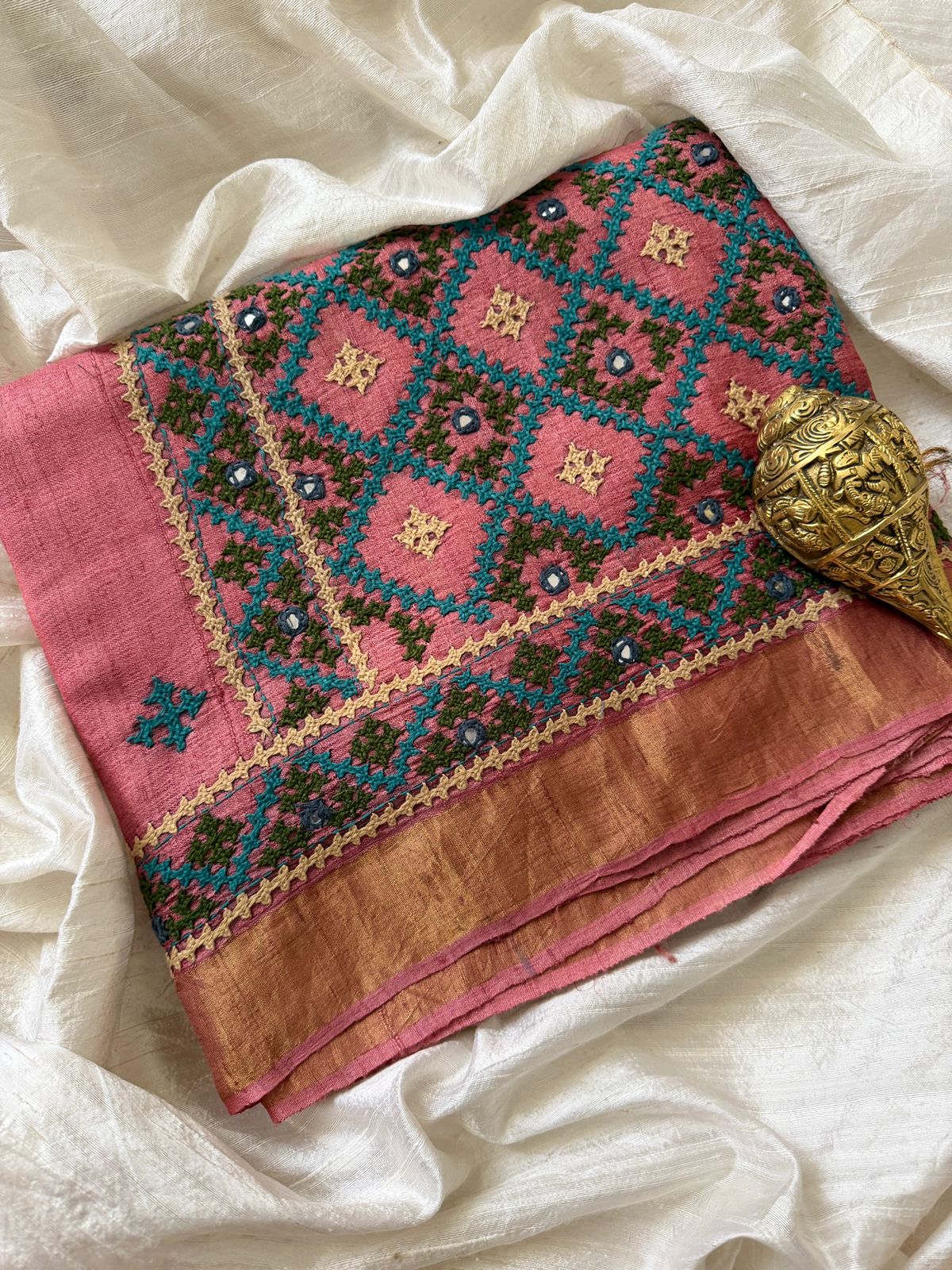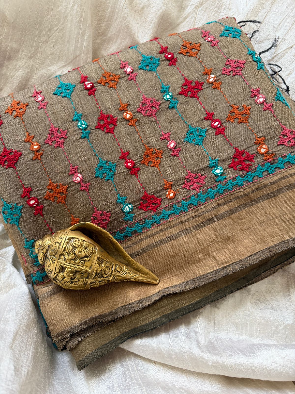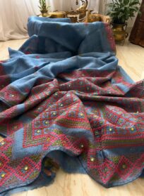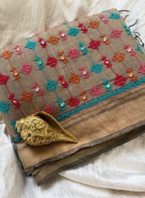 Pure Bengal Tussar Silk Saree With Kutch Embroidery