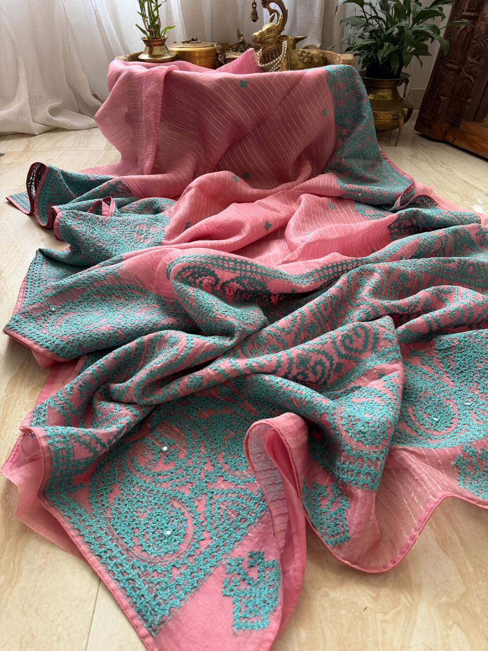Pure Organza Silk Saree with Kutch Embroidery