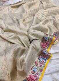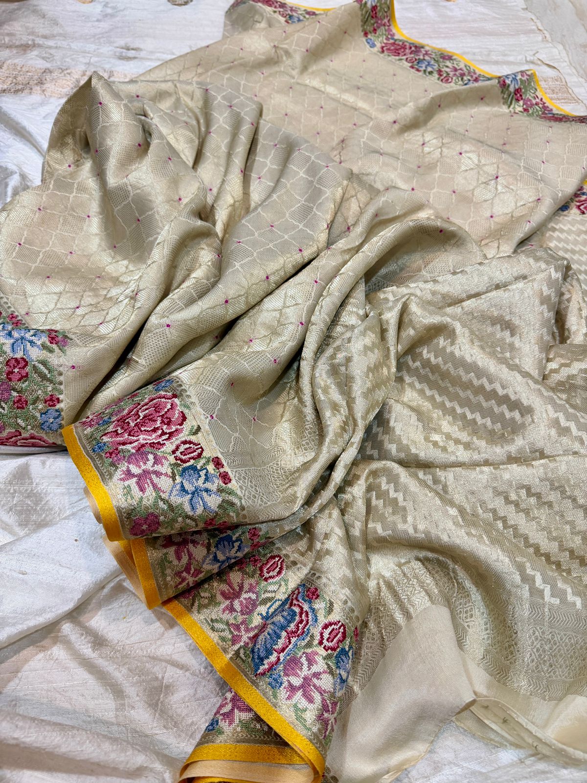Mysore Brocade Crepe Silk Saree With Petit Point Embroidery Mysore Brocade Crepe Silk Saree With Petit Point Embroidery Pure Mysore Brocade Crepe Silk Saree