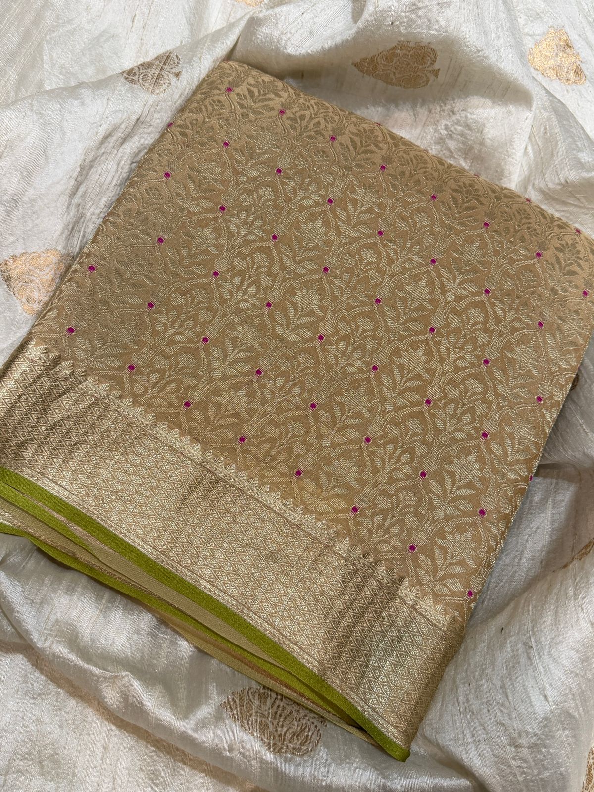 Pure Mysore Brocade Crepe Silk Saree With Meenakari and Pettit Point Embroidery