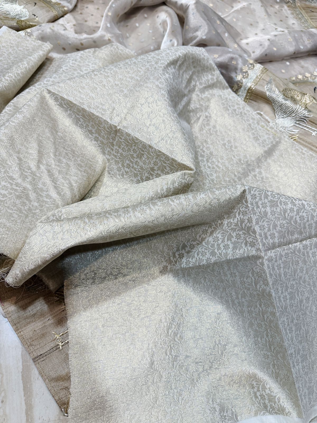 Feather-light in feel with a graceful drape, this saree is a true expression of timeless luxury—perfect for intimate weddings, festive soirées, and classy celebrations.