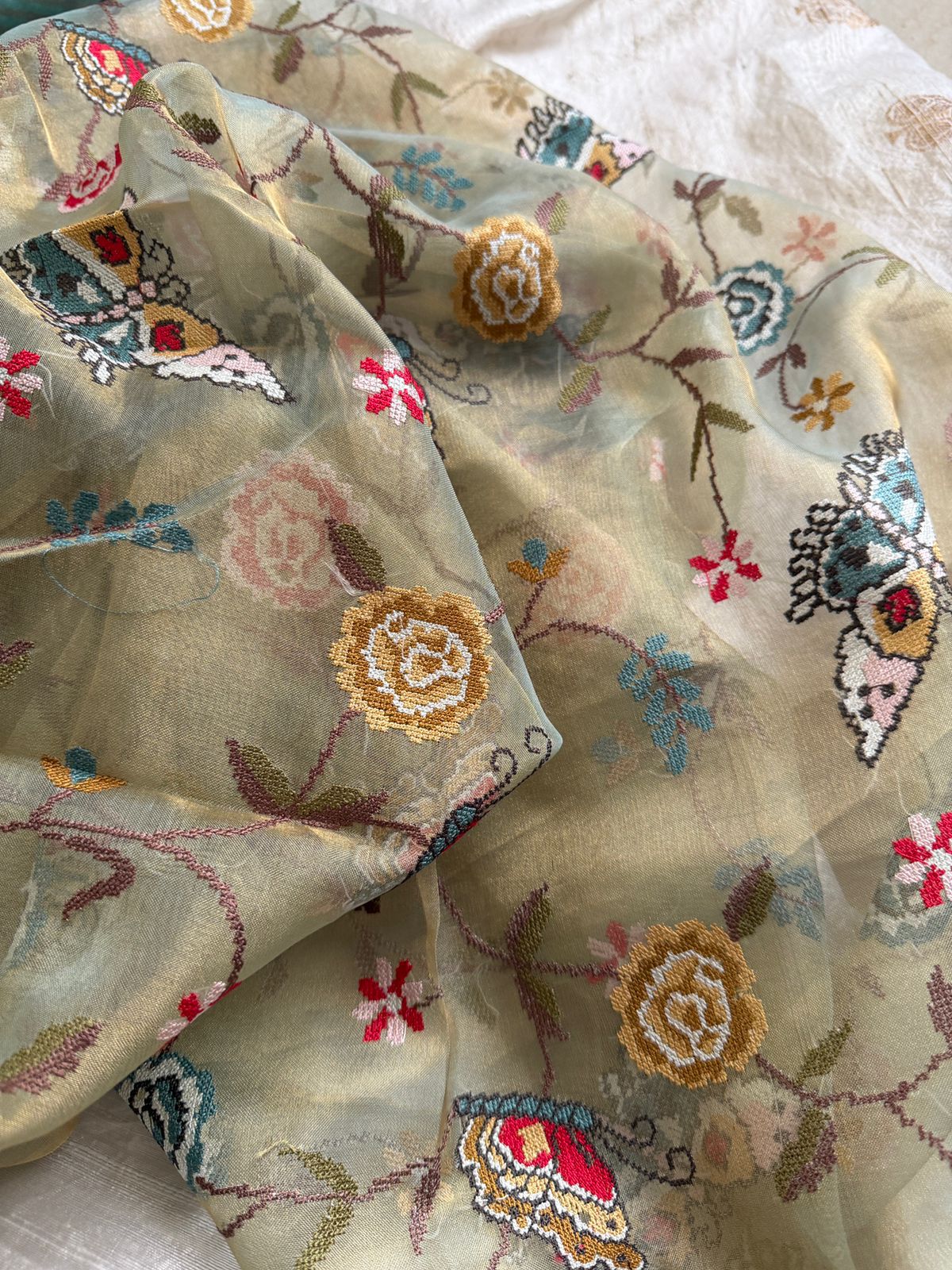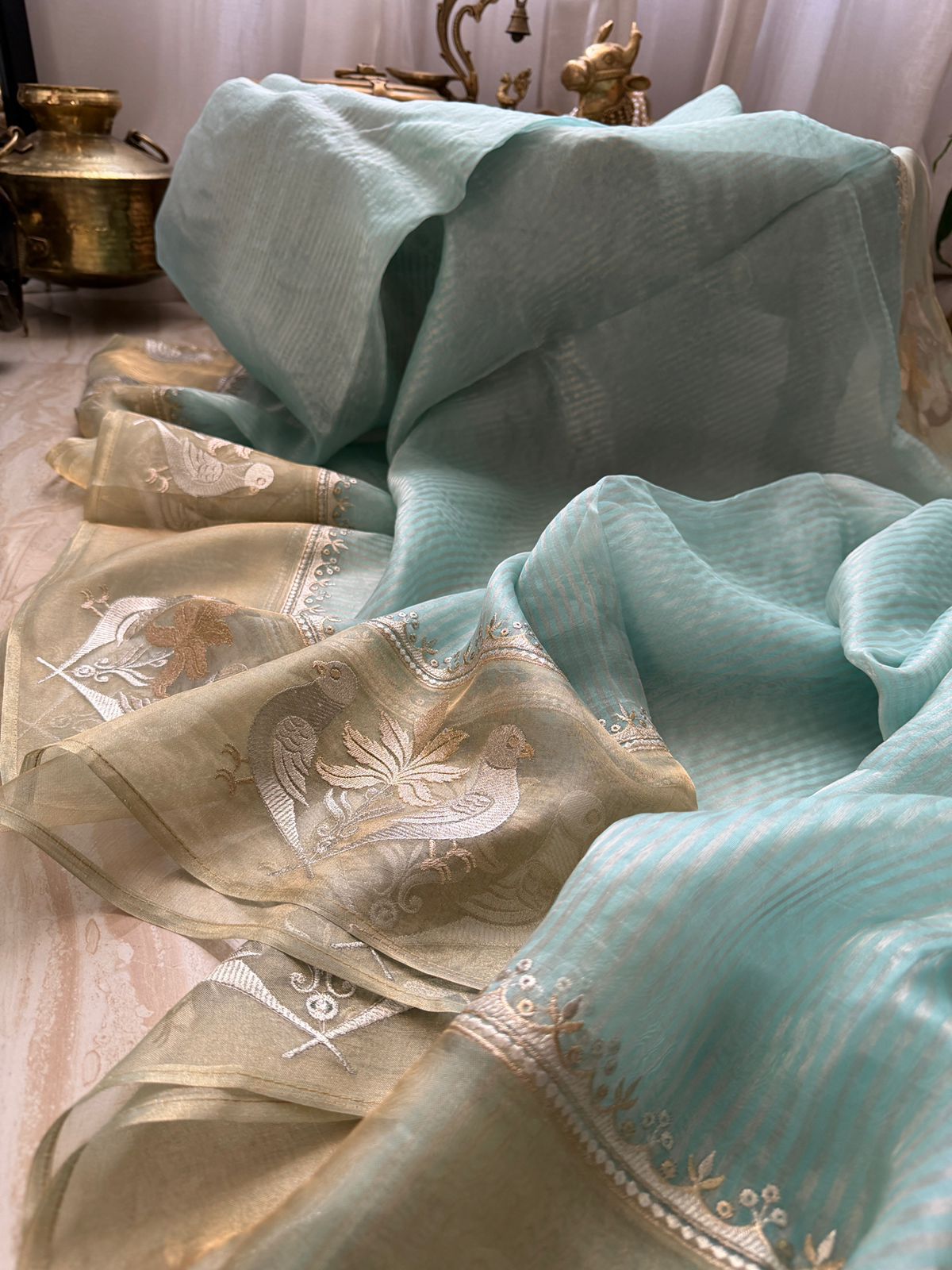 Banarasi Tissue Silk Saree With Pettit Point Embroidery Blouse Piece