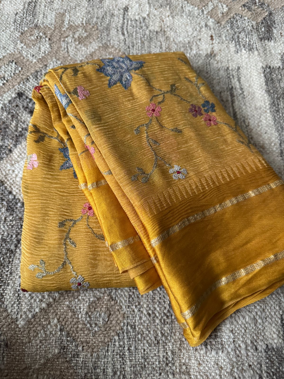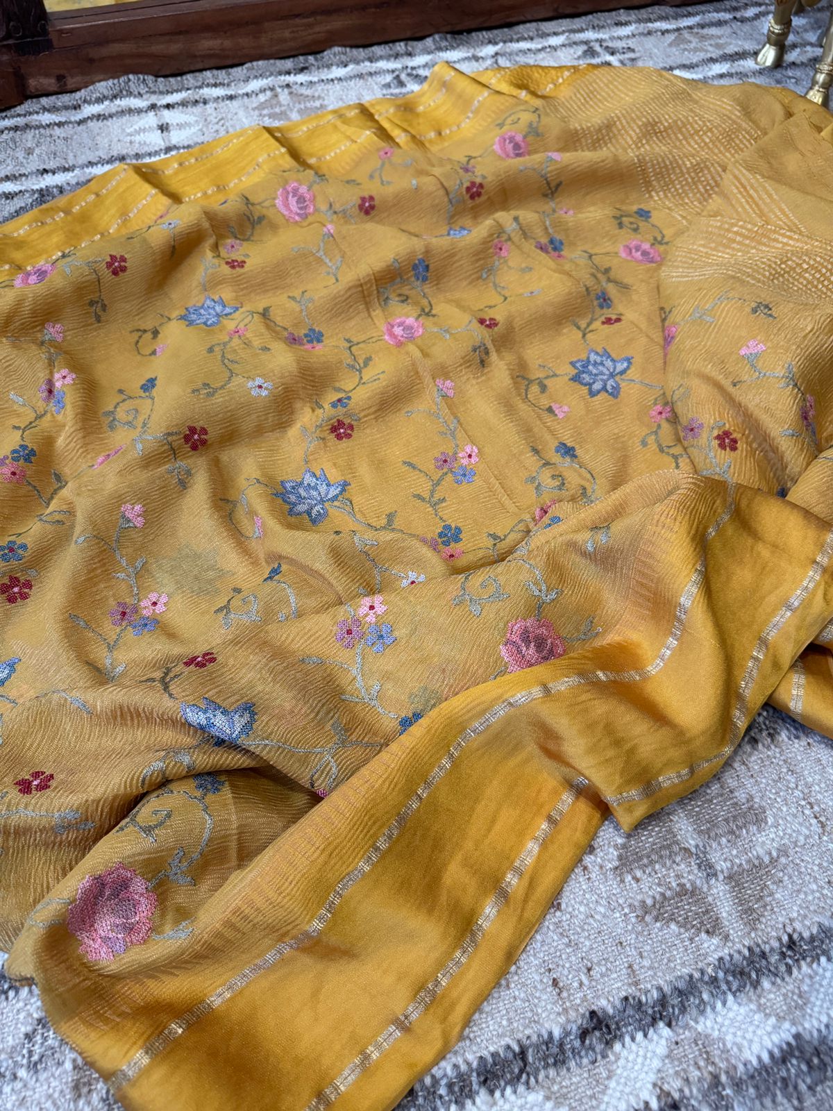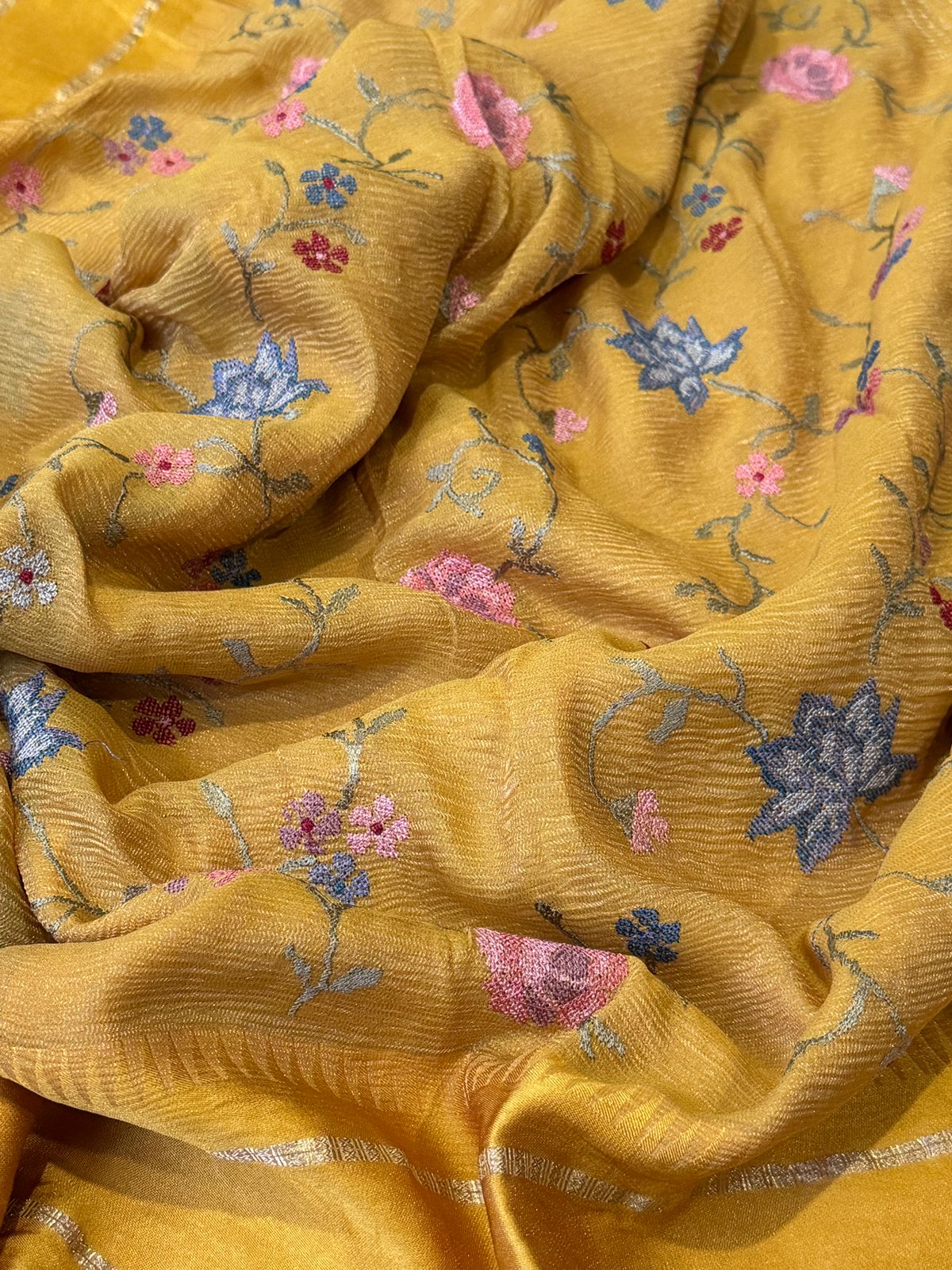 Experience the perfect blend of elegance and craftsmanship with our Crush Tissue Georgette Saree, designed to make every occasion extra special.