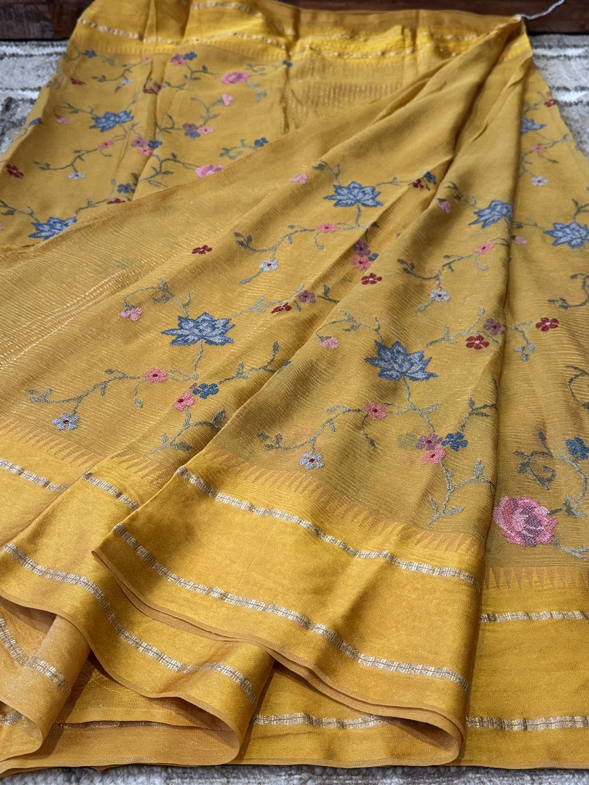 • 🌸 Border: Finished with a luxurious Satin Patta border, enhancing its graceful look with a refined sheen.