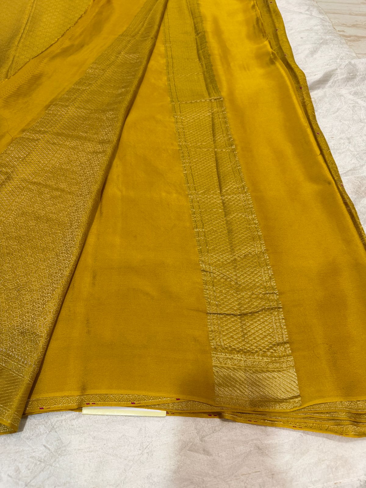 Mysore Brocade Crepe Silk Saree with Meenakari Weave