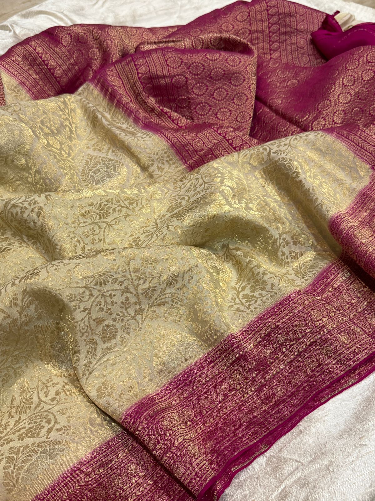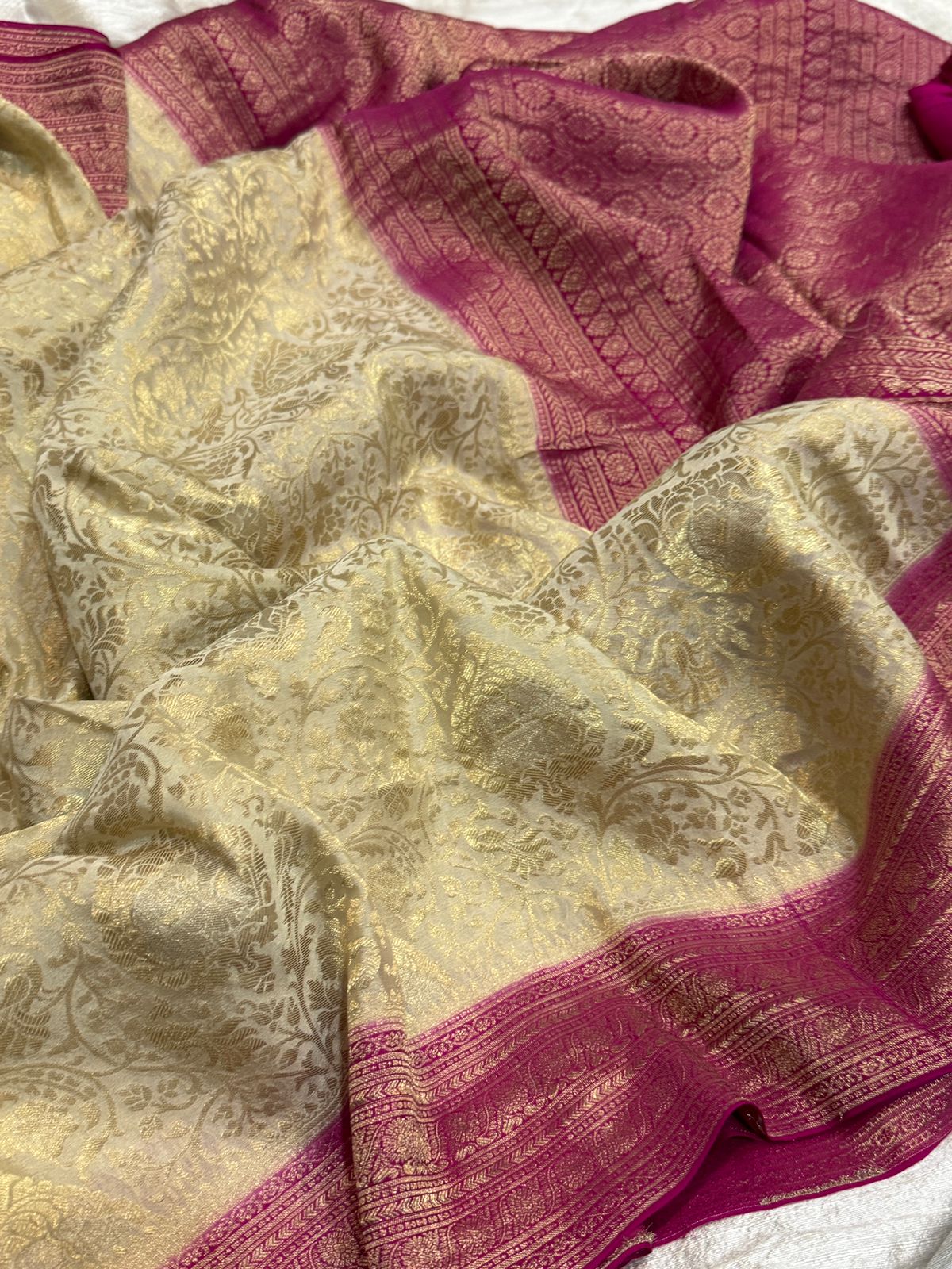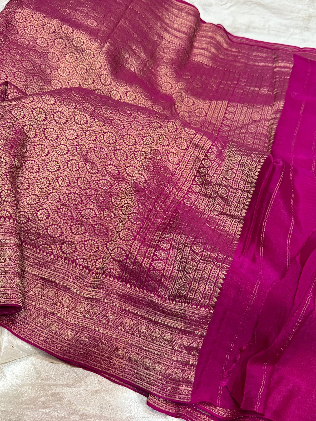 Pure Mysore Brocade Crepe Silk Saree Zari Weave ..
