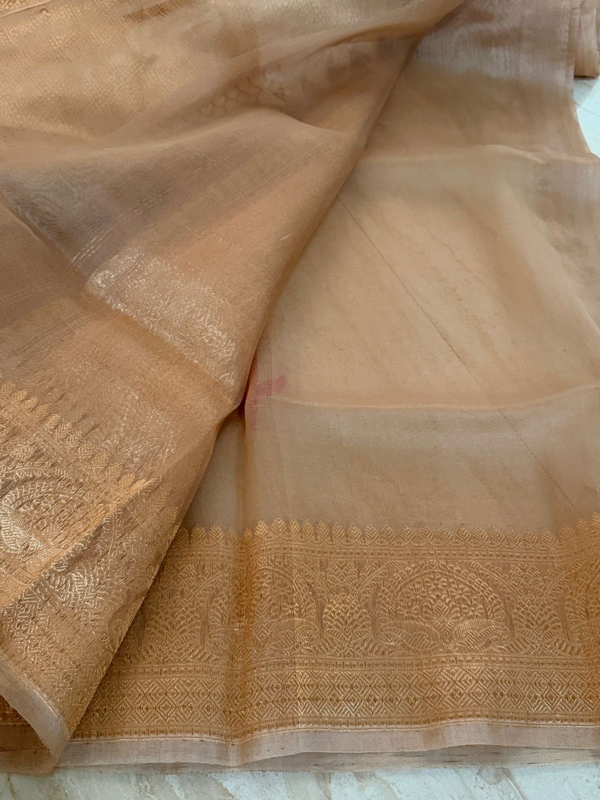 Beautiful Pure Handloom kora banarasi silk saree with Antiq Zari weave pallu and border