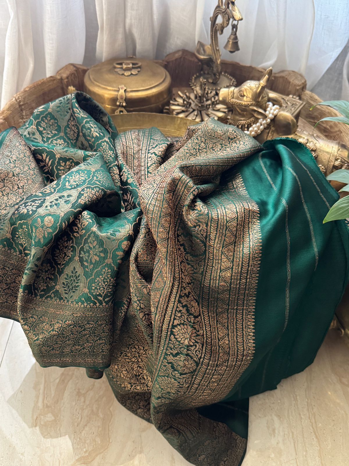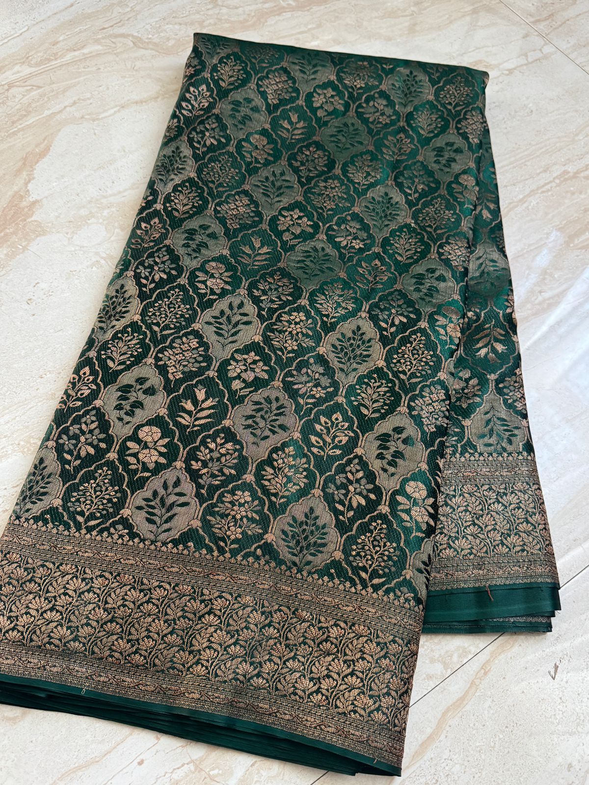 Pure Mysore Brocade Crepe Silk Saree Zari Weave ..