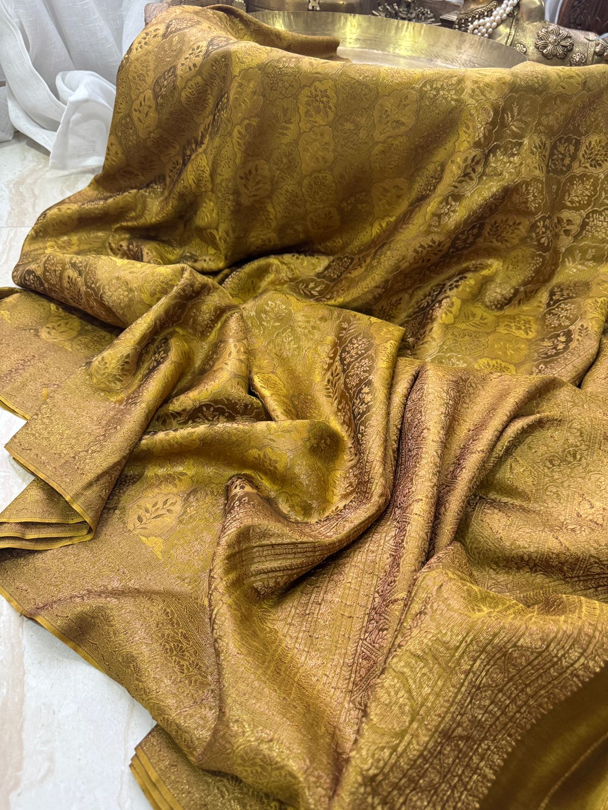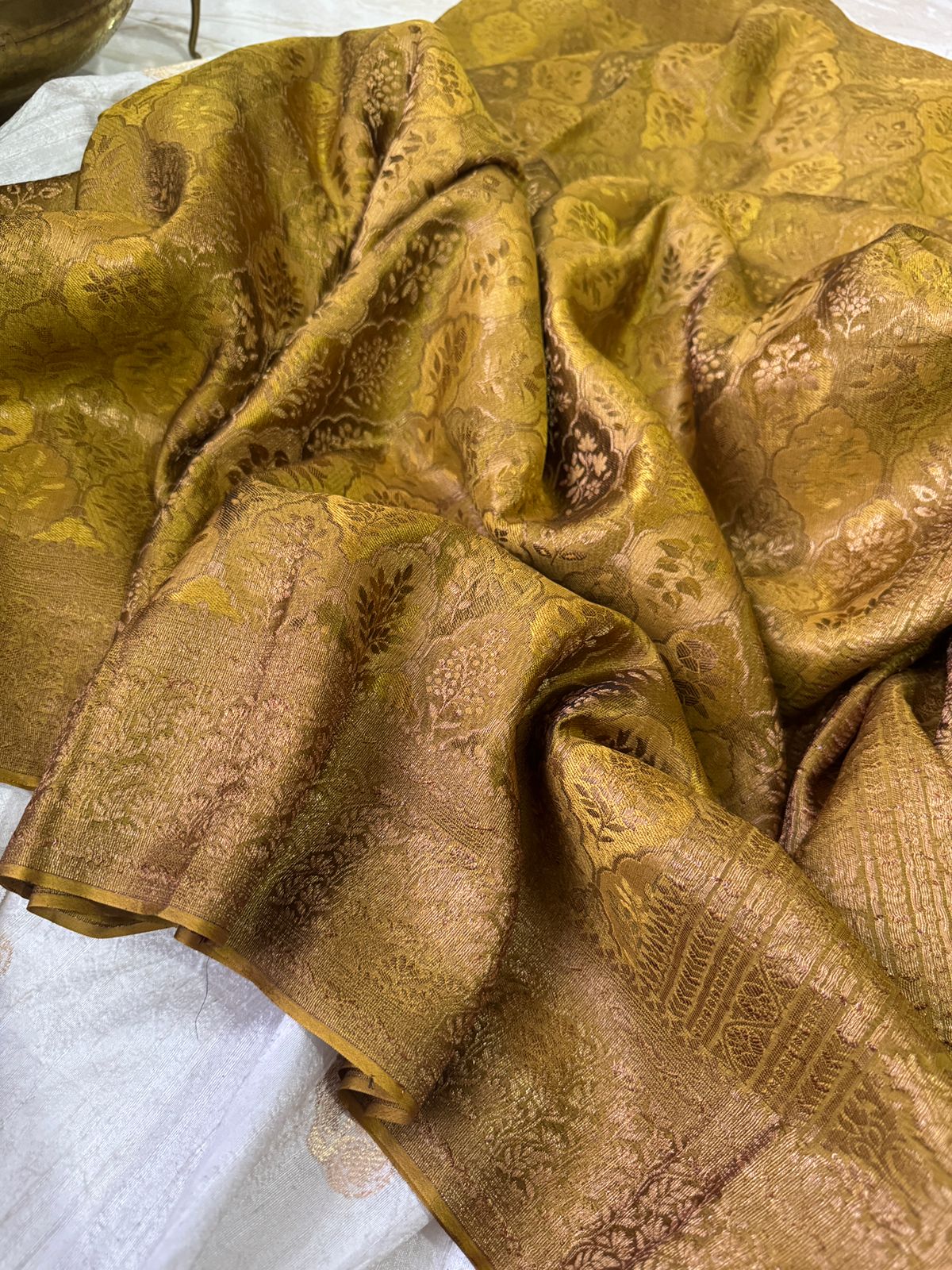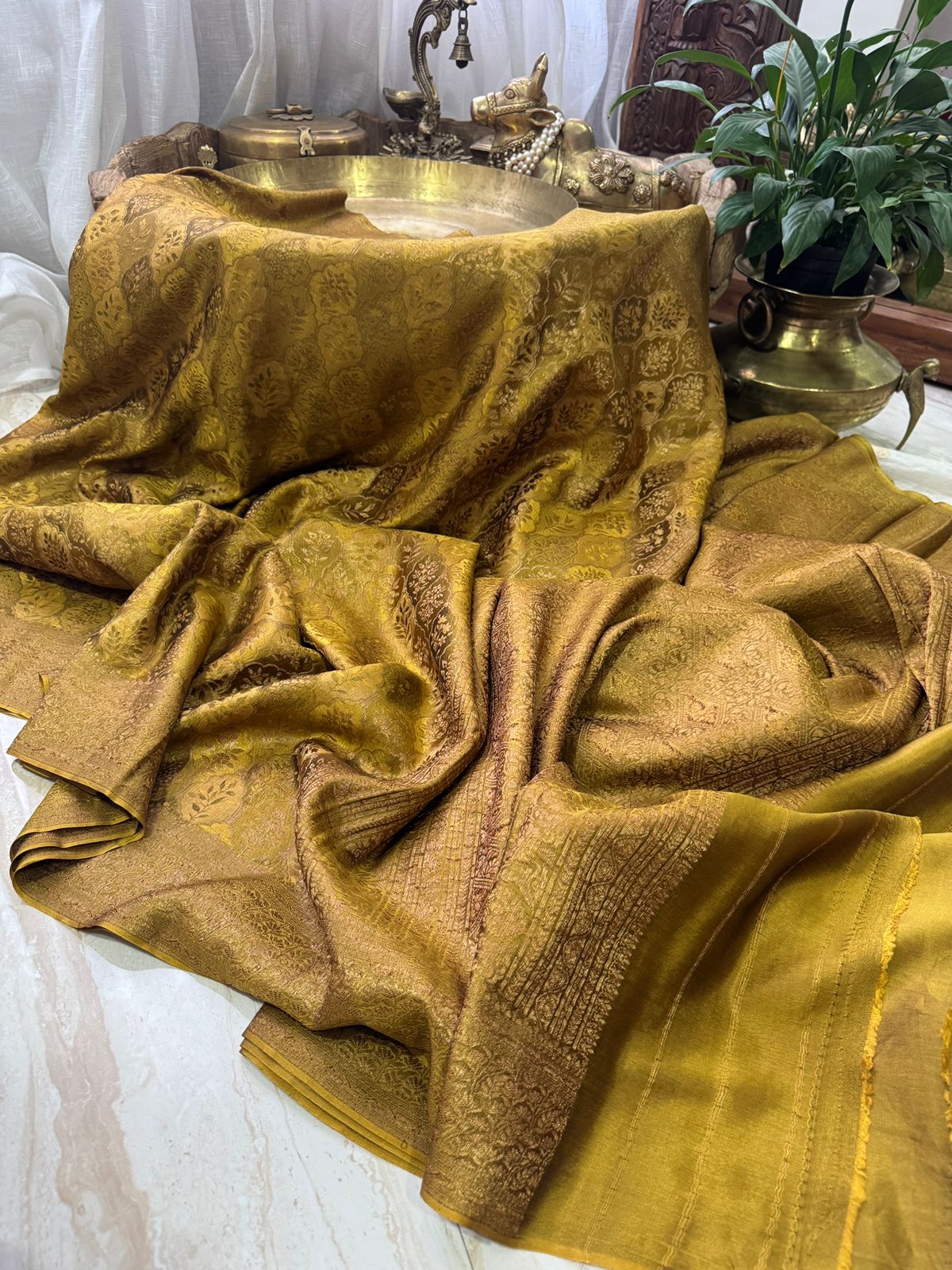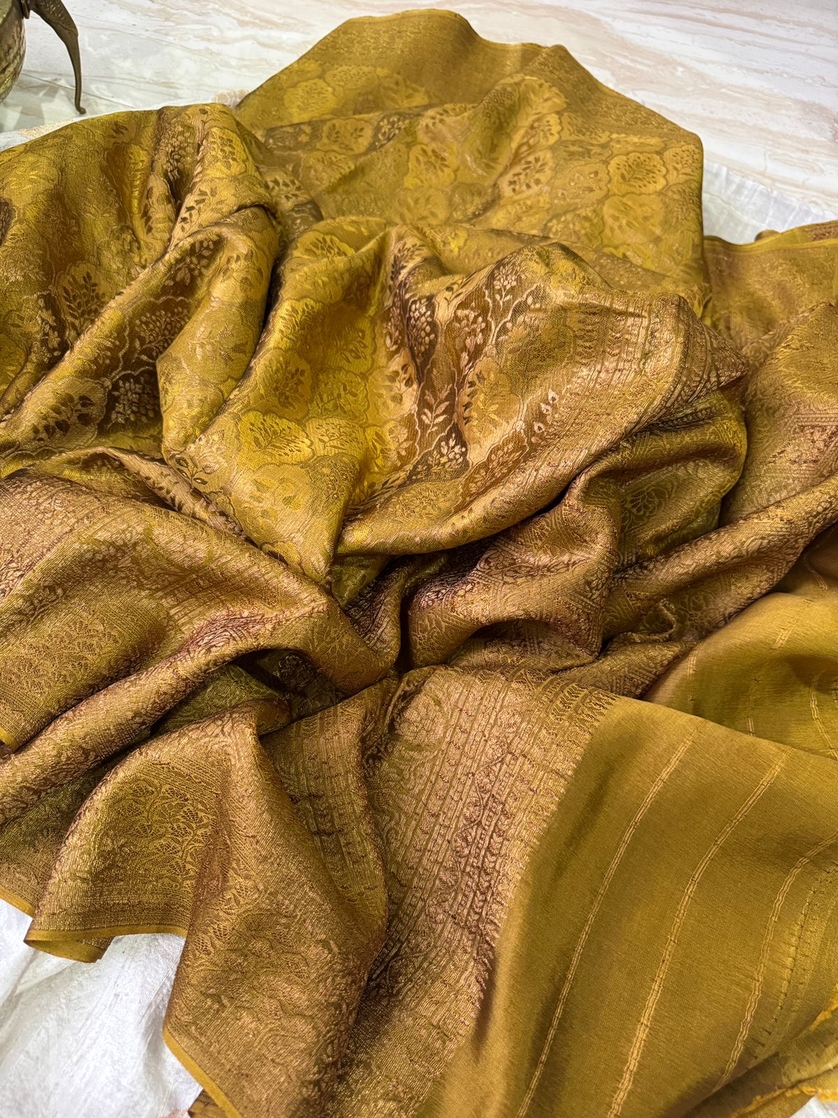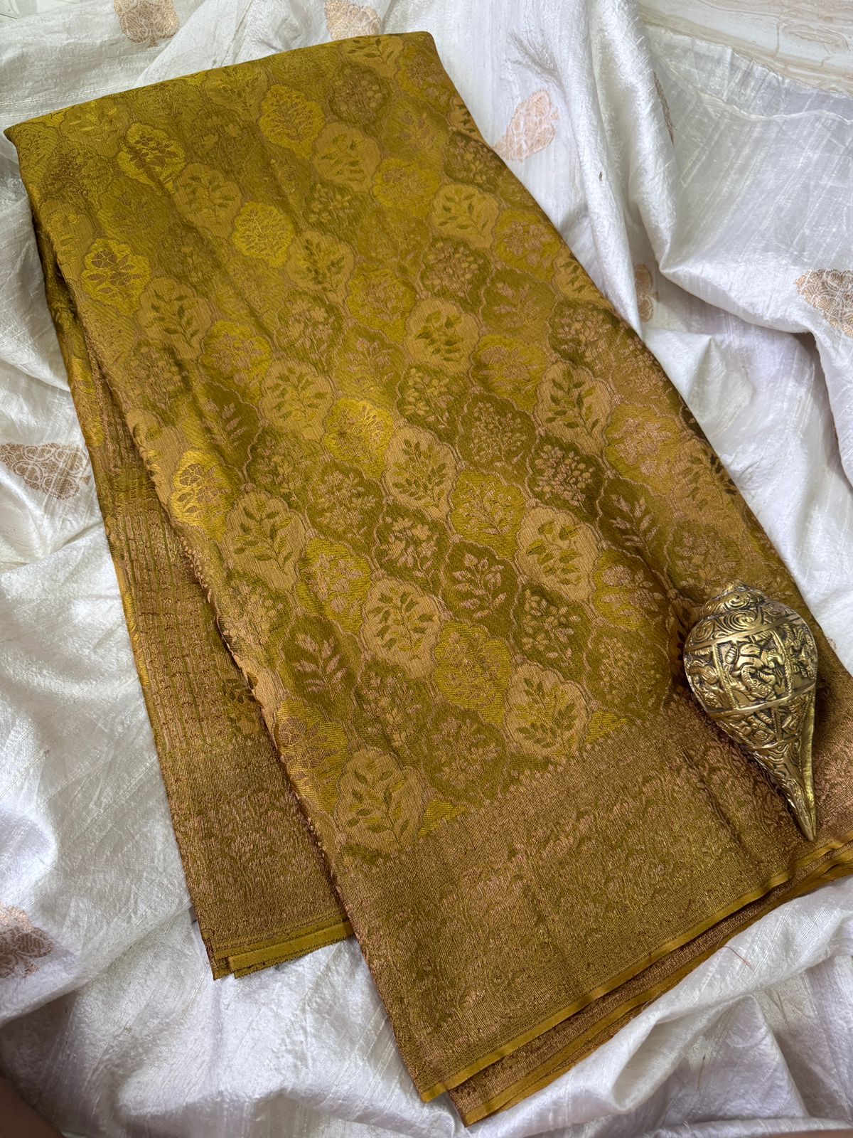 Pure Mysore Brocade Crepe Silk Saree With Antiq Zari Weave
