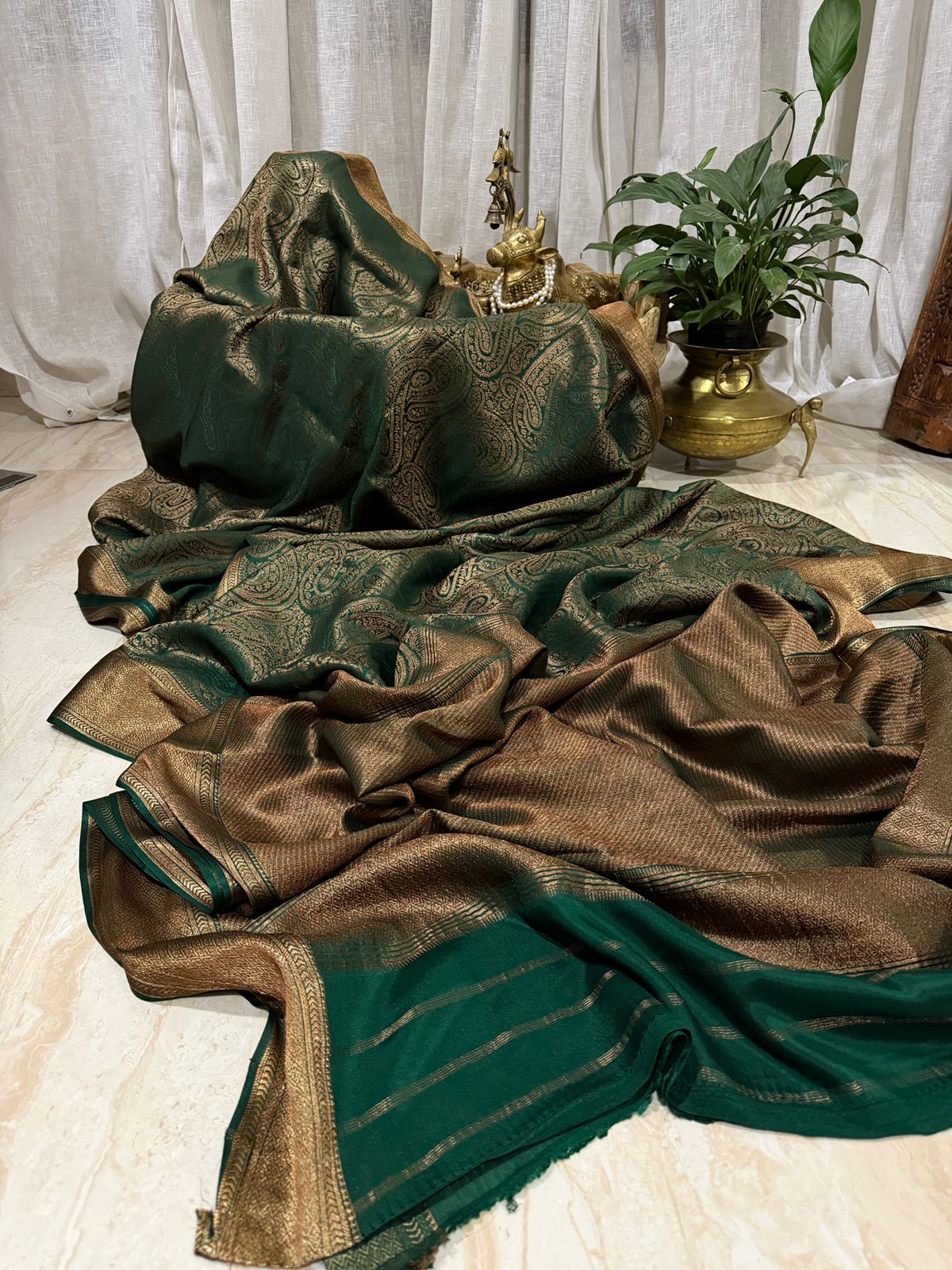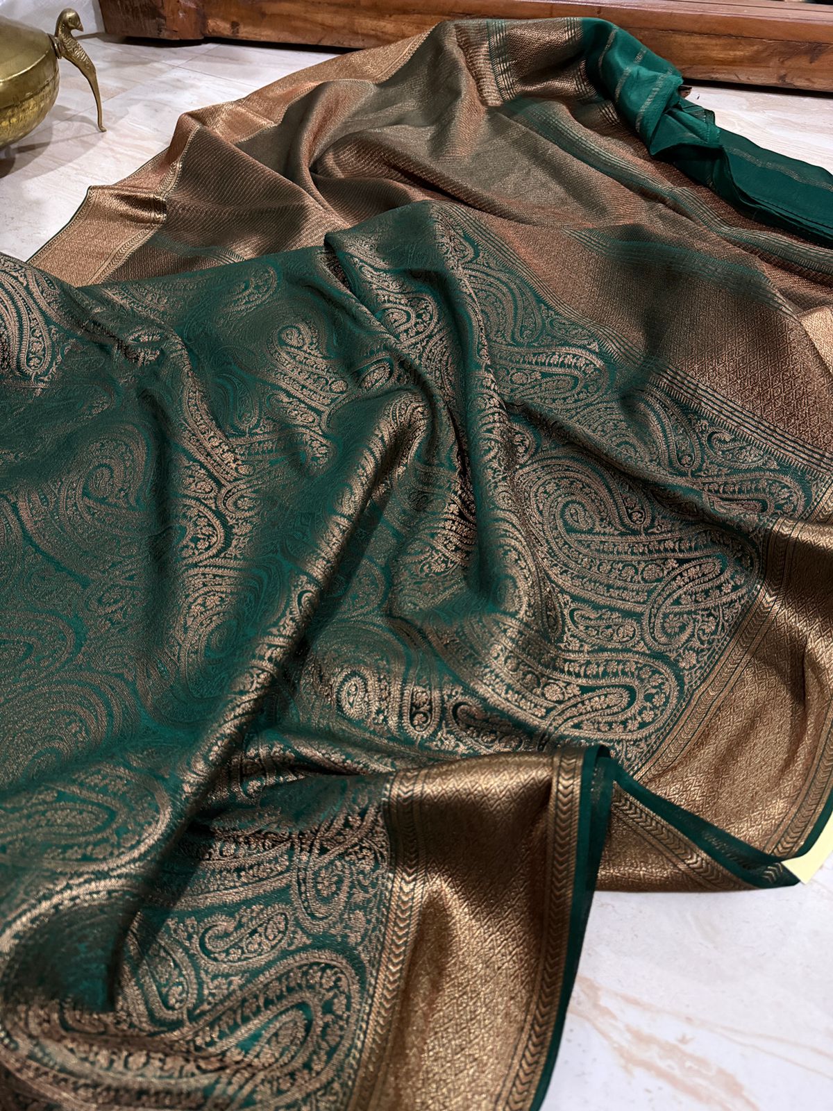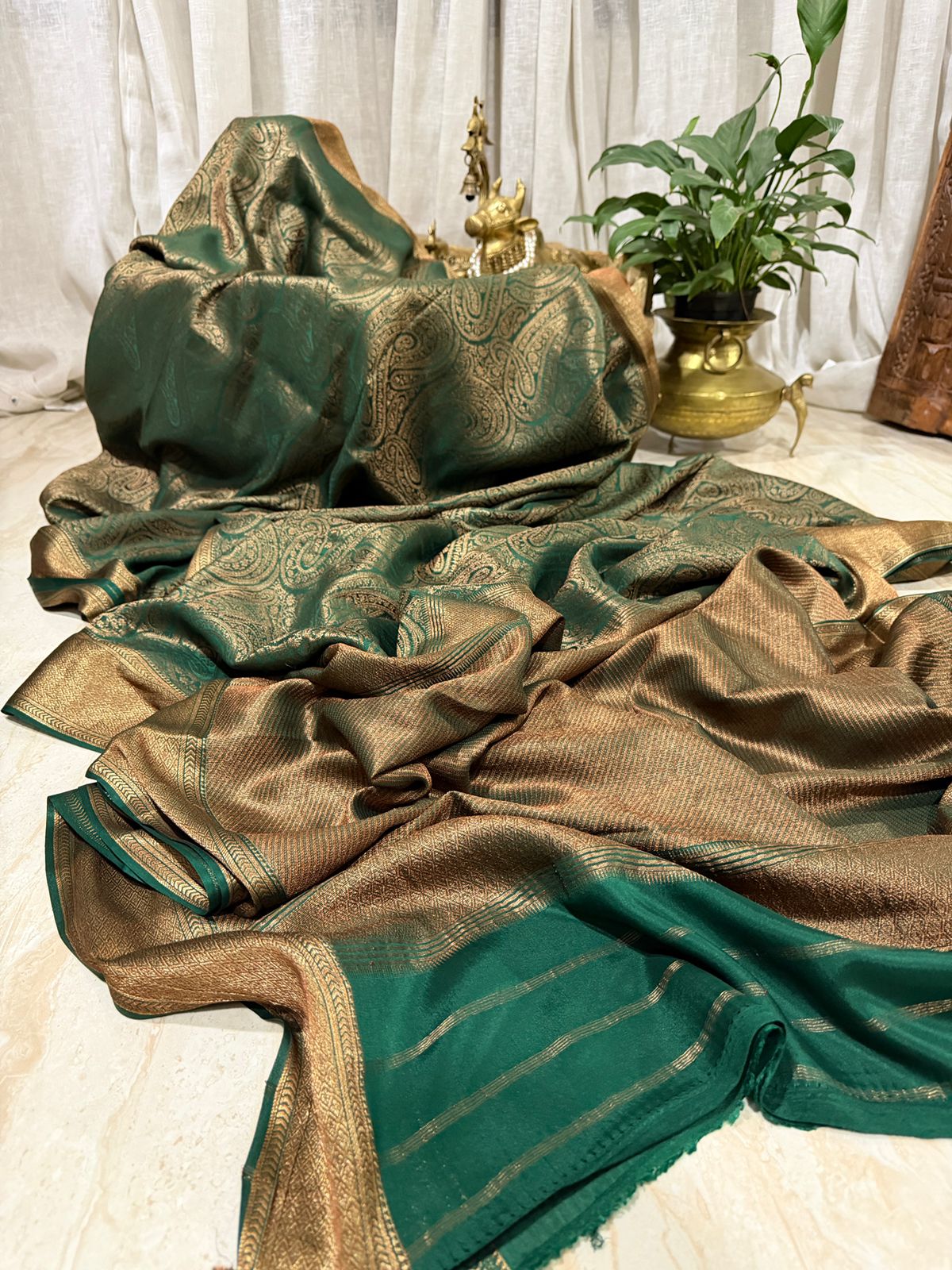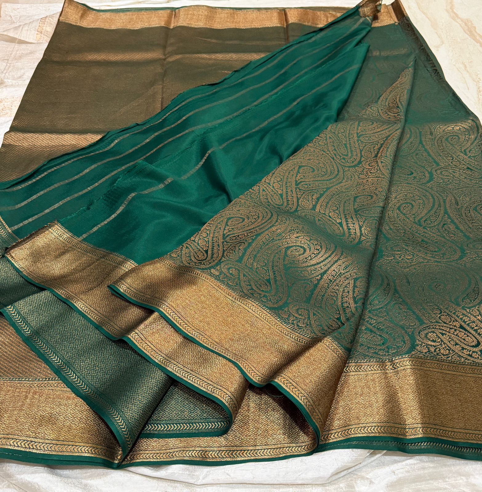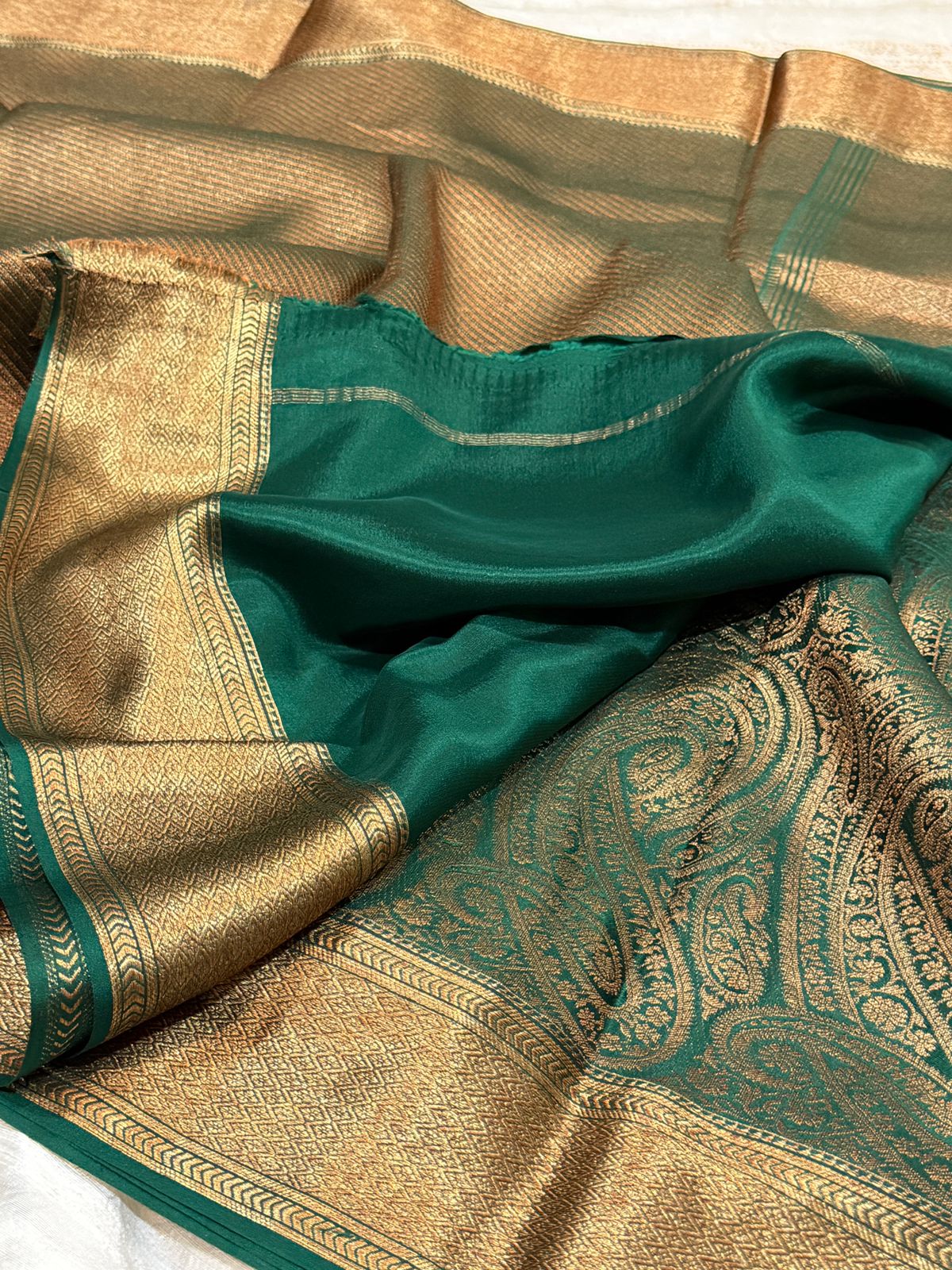 Pure Mysore Brocade Crepe Silk Saree Zari Weave ..