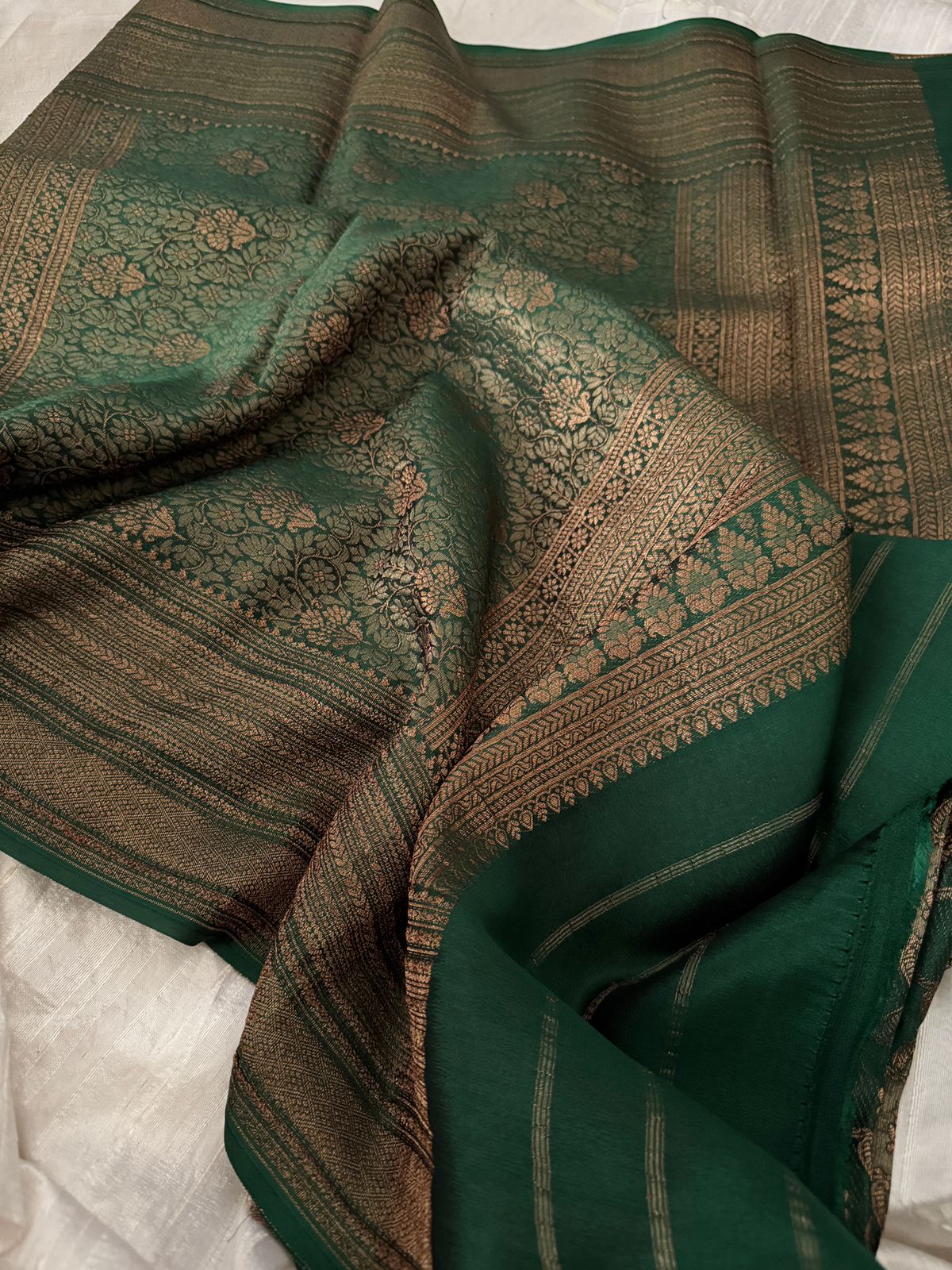 Pure Mysore Brocade Crepe Silk Saree Zari Weave ..