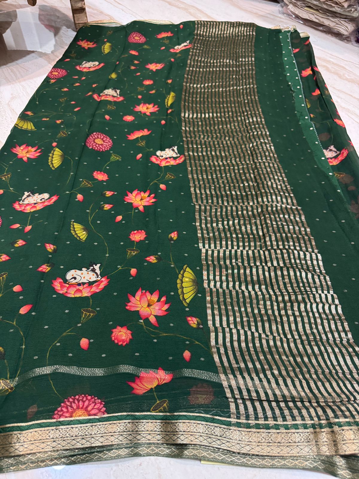 Pure Mysore Chiffon Digital Print Saree with Zari Weave Border ✨