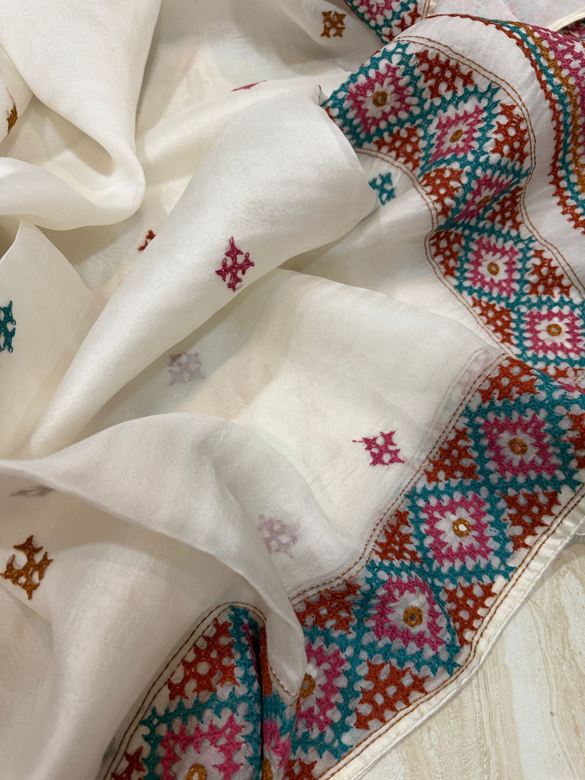 Pure Organza Saree with Handcrafted Kutch Embroidery