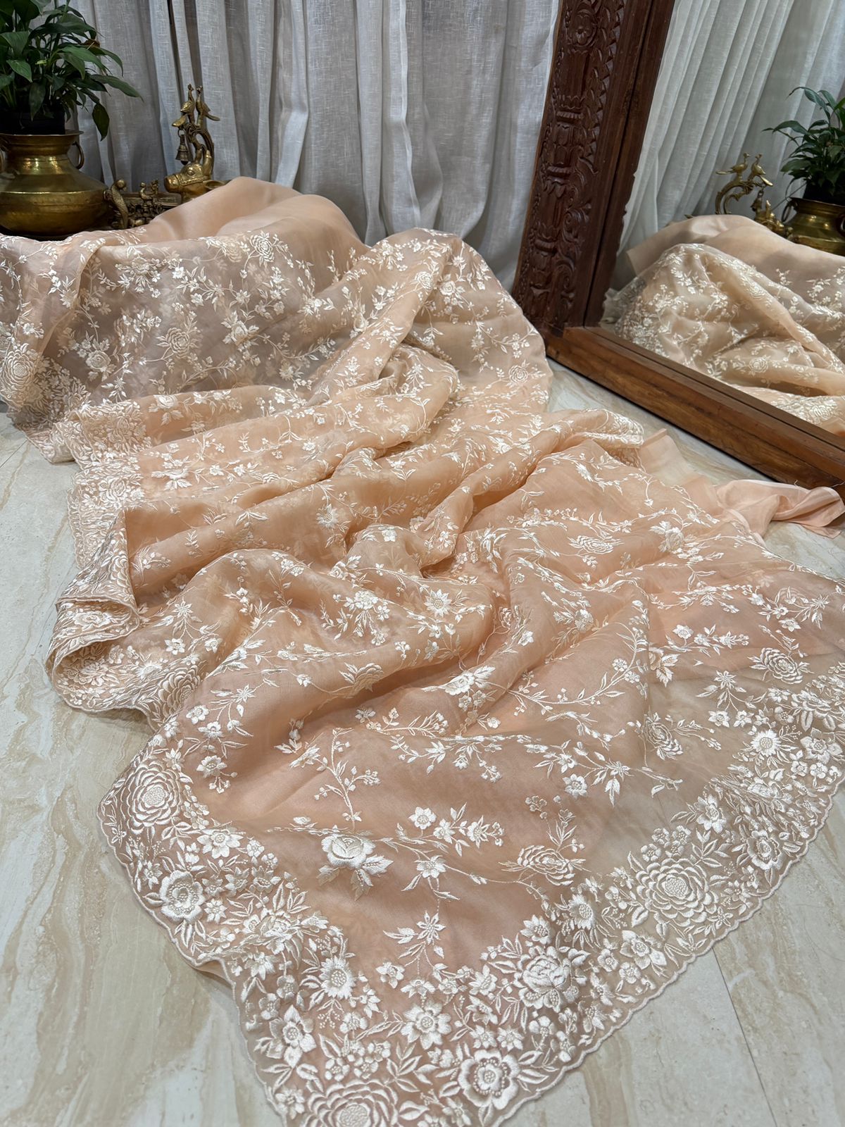 Pure Organza Saree with Parsi Gara Machine Embroidery