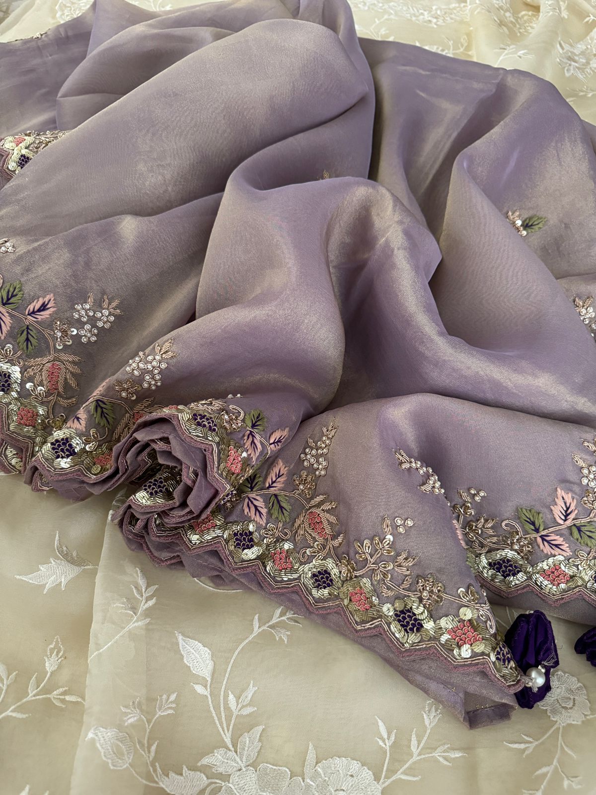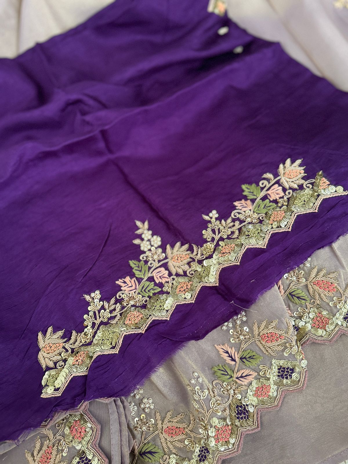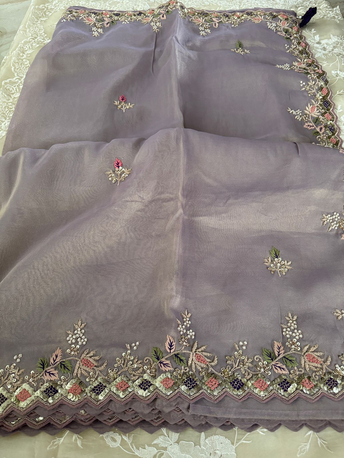 – Hand-embroidered Zardozi work