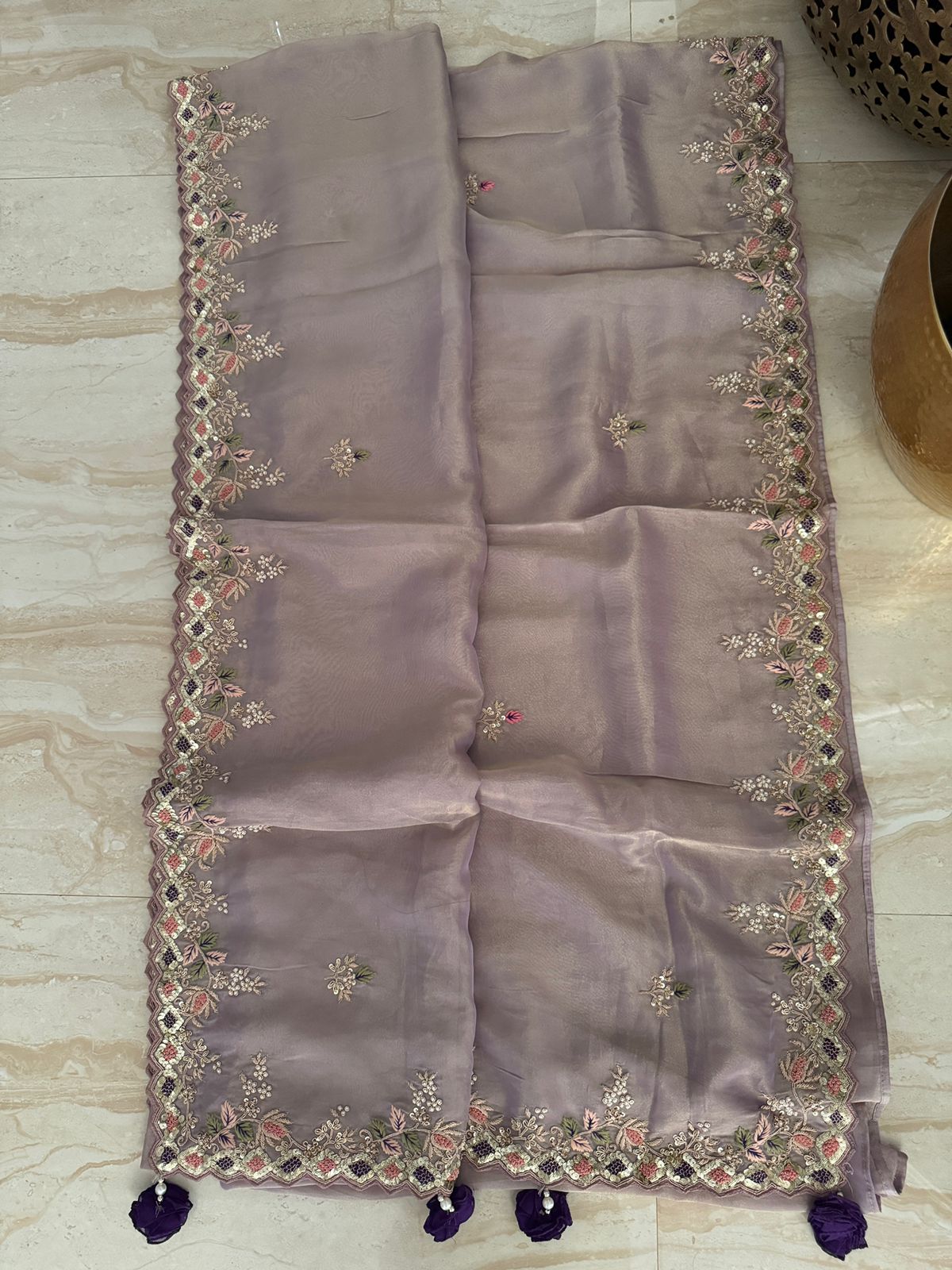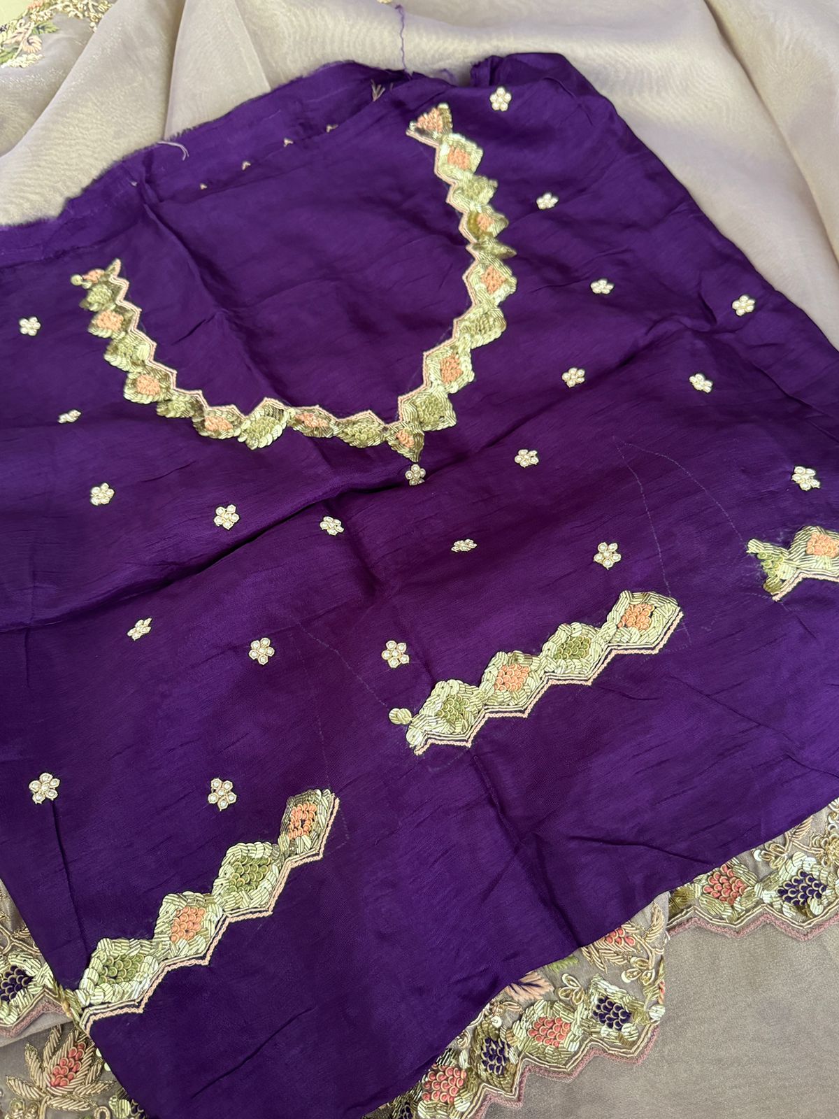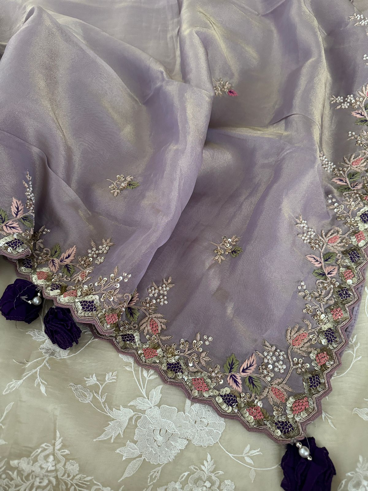 – Hand-embroidered Zardozi work
